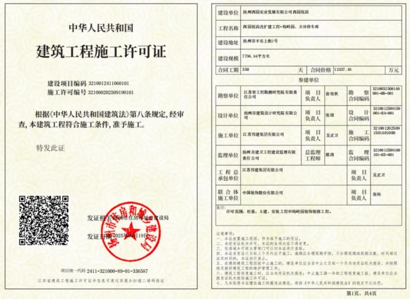 9月19日,位于丰乐上街1号的西园饭店改扩建项目成功取得施工许可证,标志着北护城河文旅集聚区核心工程正式进入实质性建设阶段,为扬州“古运河重生”战略落地及北护城河沿线文旅开发按下“加速键”,注入强劲新动能。
